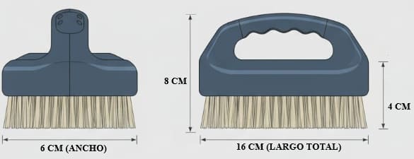 Los usos típicos para este cepillo son eliminar suciedad persistente y manchas en zonas como juntas de azulejos, fregaderos, inodoros, bañeras, tapizados y cualquier área que requiera un cepillado manual intenso.