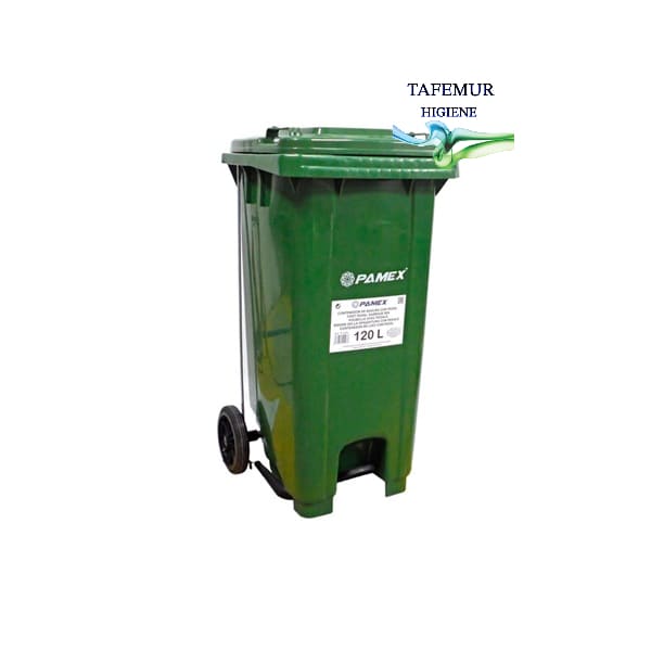 Contenedor de basura con ruedas y pedal 120 litros Verde